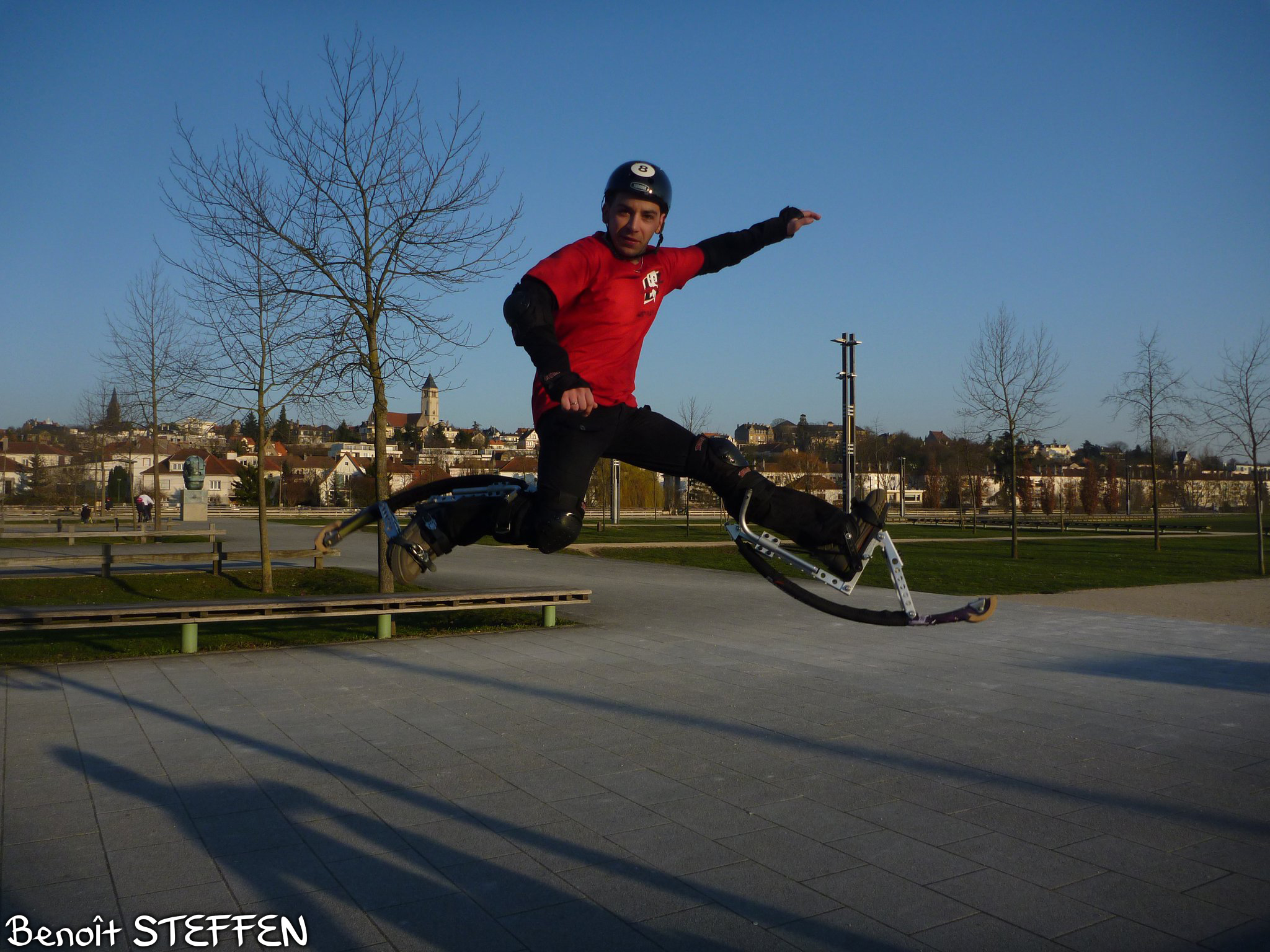 La jambe de derrière doit être pliée, et plus haut que celle de devant.