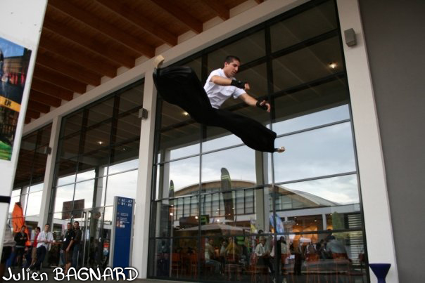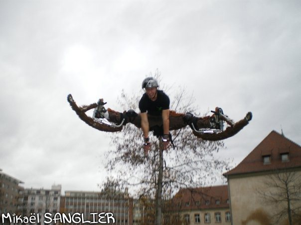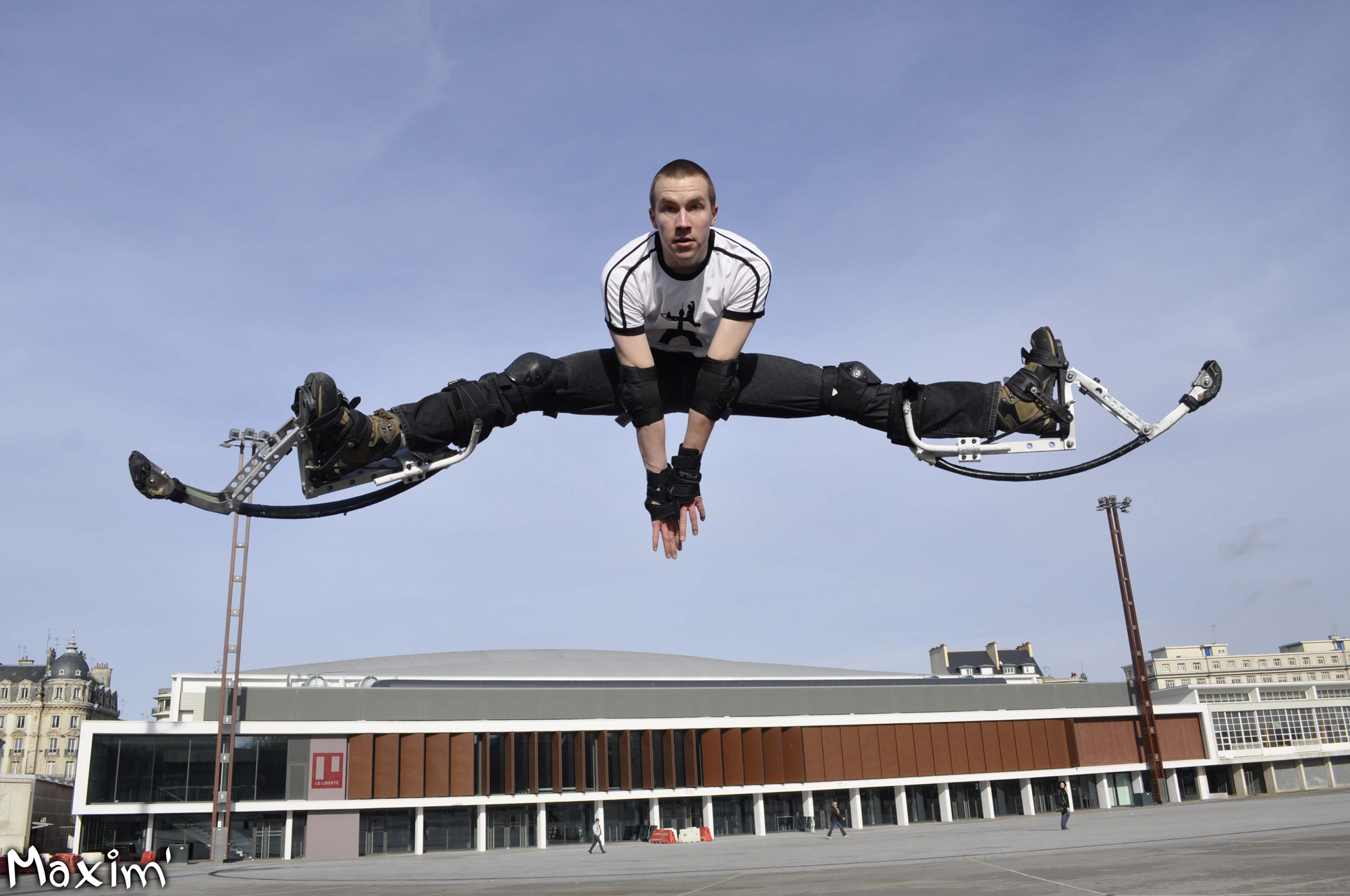 Avec la hauteur en échasses urbaines et la vue en contre-plongée, même sans savoir faire un 'vrai' grand écart, le public en aura l'impression.