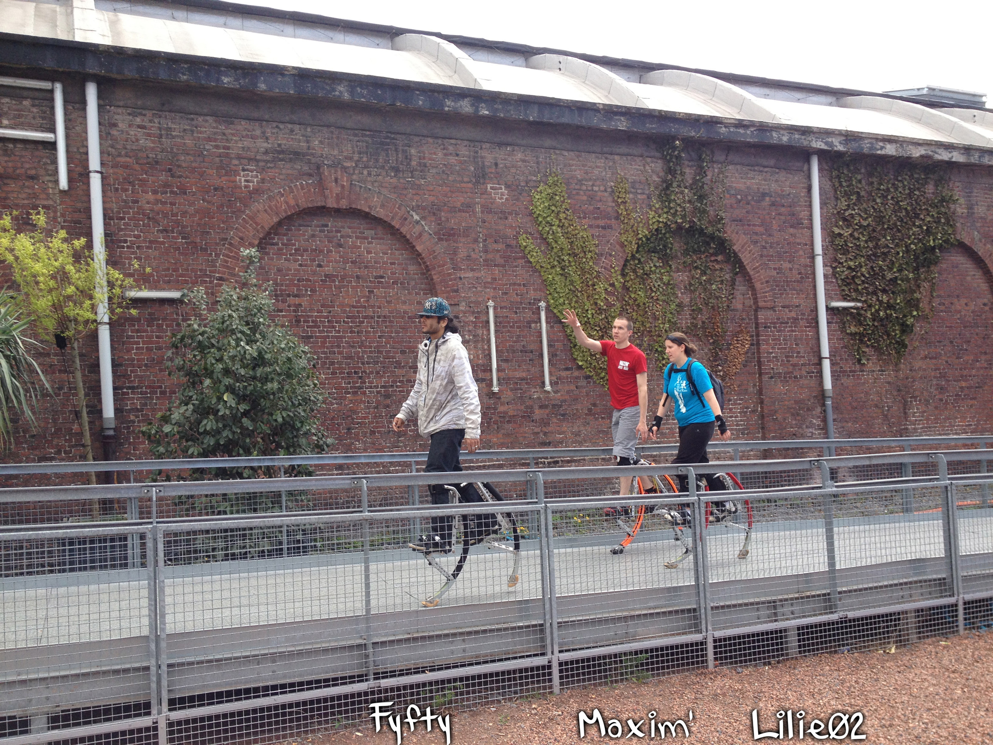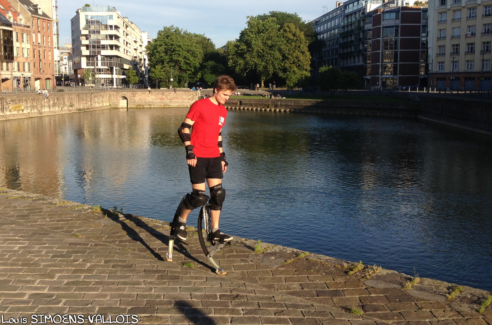 - À bien soulever les pieds. Vous avez remarqué, les échasses ne sont légères. Forcez-vous à bien monter les jambes au début pour éviter que les tampons ne touchent le sol. Vous aurez ainsi une démarche de Robocop au début, mais cette démarche va s’assouplir au fur et à mesure,