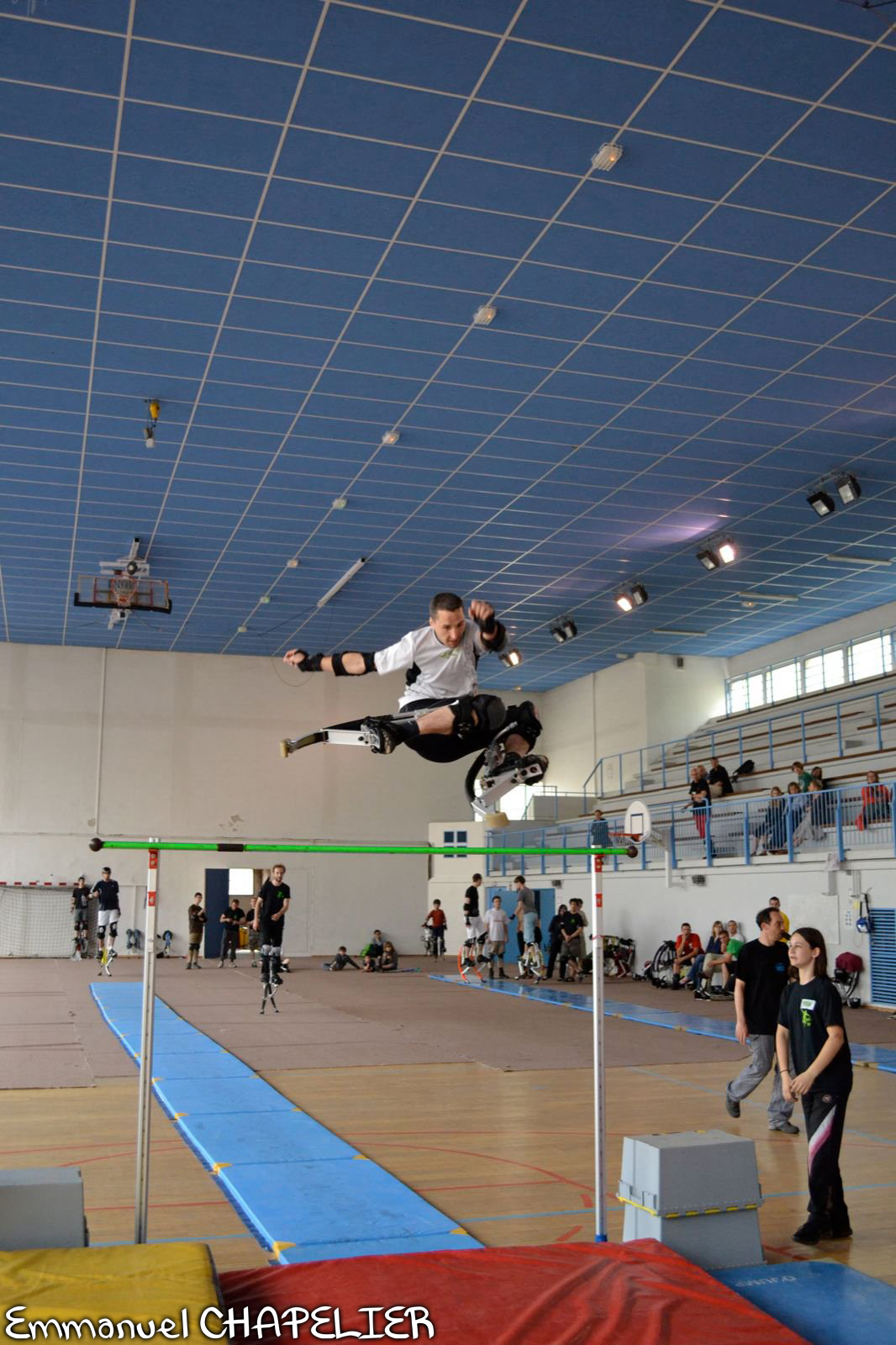 Une fois les petits obstacles passés, il faudra augmenter progressivement la hauteur. La difficulté va consister à faire le dernier saut pieds joints au bon endroit pour avoir suffisamment de distance pour arriver à votre apogée au-dessus de l’obstacle. Et cela, vous l’apprendrez petit à petit avec l’expérience.