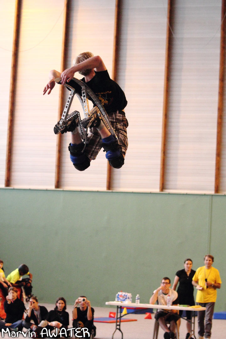 Le plus simple à apprendre au début et de toucher les tampons en plaçant vos mains à l'arrière. Le problème est que vous ne serez pas capable de visualiser vos mains en train de toucher les tampons, puisque votre regard est de l'autre côté. Le mieux est, au sol, de soulever une jambe et d'essayer de toucher le tampon avec votre main sans regarder. Vous faites ça plusieurs fois avec chaque jambe, et vous serez prêt à tenter de le faire en sautant. Si vous ratez trop souvent vos tampons, recommencez à vous entraîner au sol.