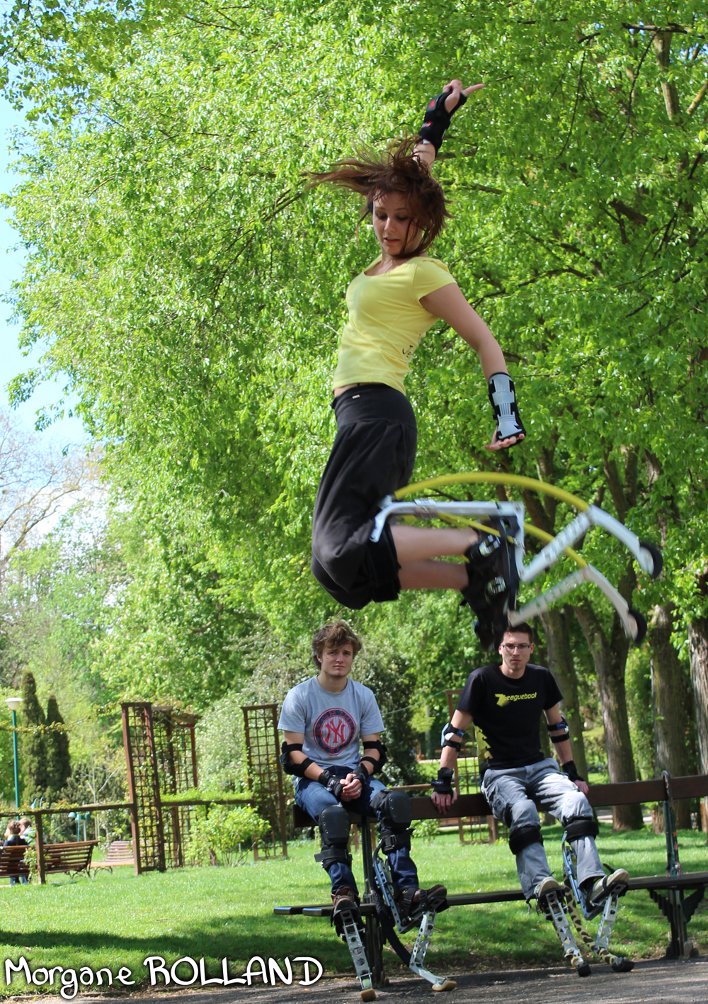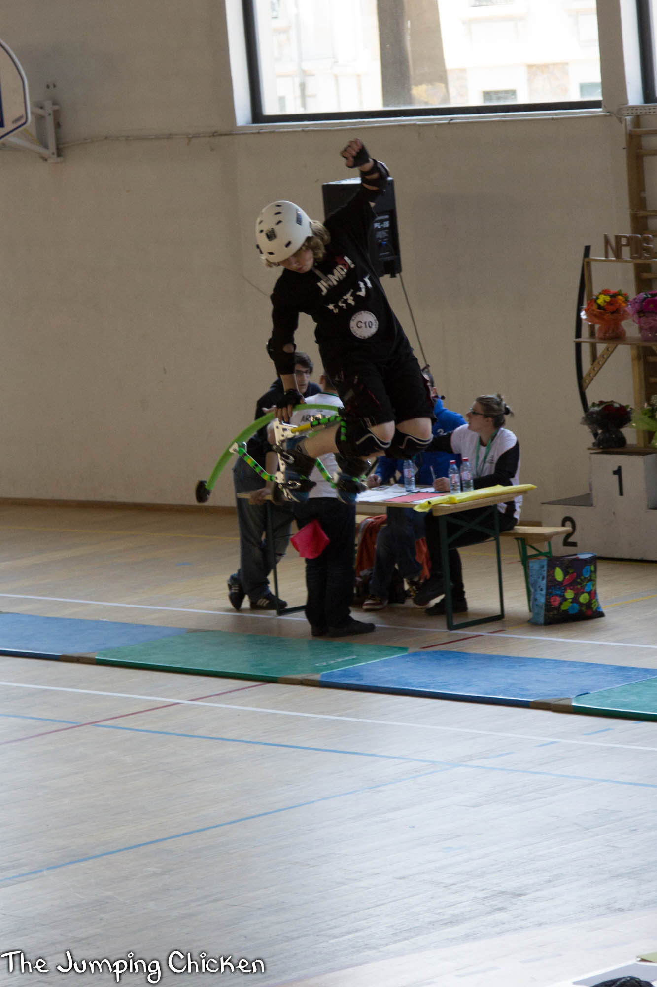 Le problème que vous allez à voir avec cette figure est que vous ne serez pas capable de visualiser vos mains en train de toucher les lames, puisque votre regard est de l'autre côté. Le mieux est, au sol, de soulever une jambe et d'essayer de toucher la lame avec votre main sans regarder. Vous faites ça plusieurs fois avec chaque jambe, et vous serez prêt à tenter de le faire en sautant. Si vous ratez trop souvent vos lames, recommencez à vous entraîner au sol.